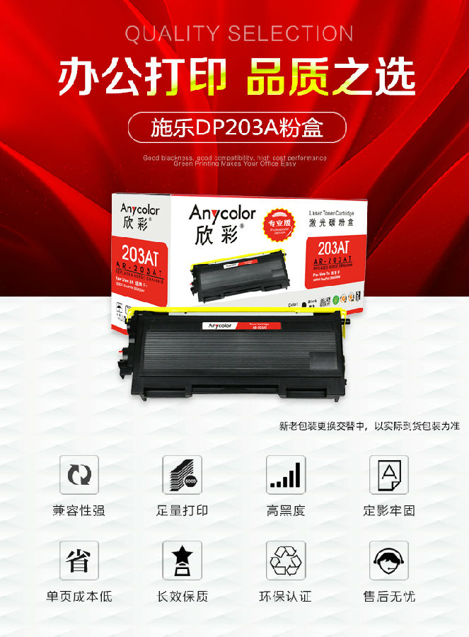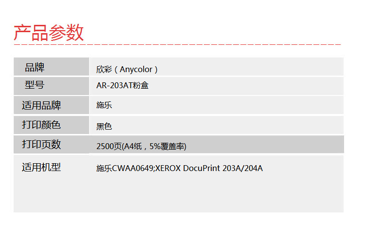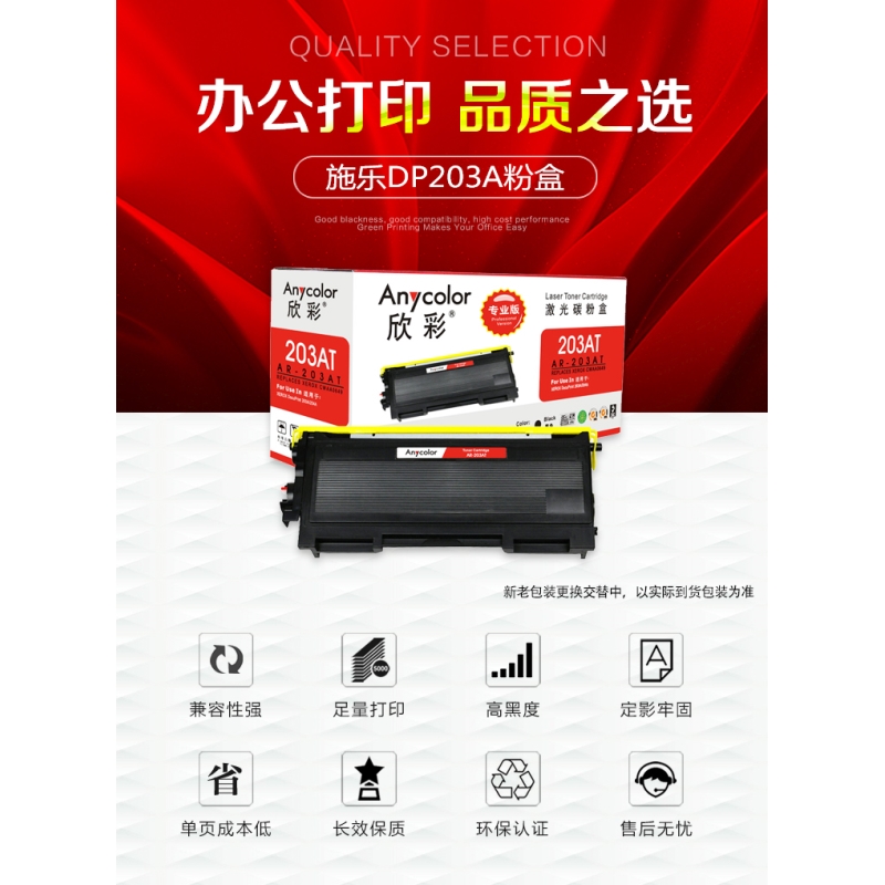 欣彩(Anycolor)DP203A粉盒(專業(yè)版)AR-203AT黑色墨粉盒 適用施樂(lè)CWAA0649 XEROX DocuPrint 203A 204A