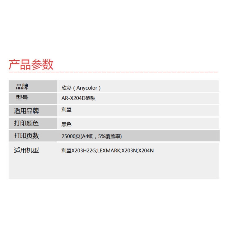 欣彩(Anycolor)X204D鼓架(專業(yè)版)AR-X204D黑色硒鼓組件 適用利盟X203H22G LEXMARK X203N X204N打印機(jī)