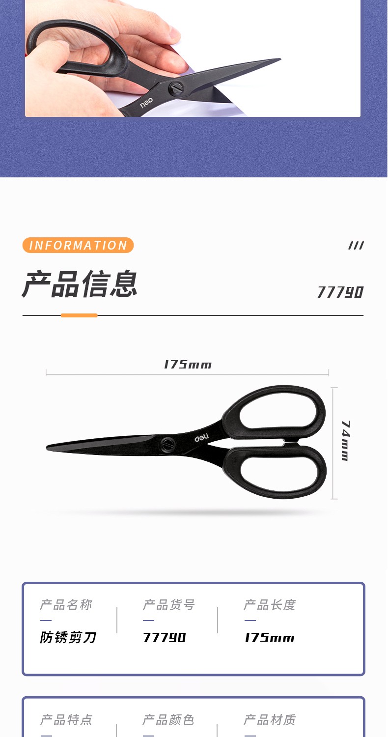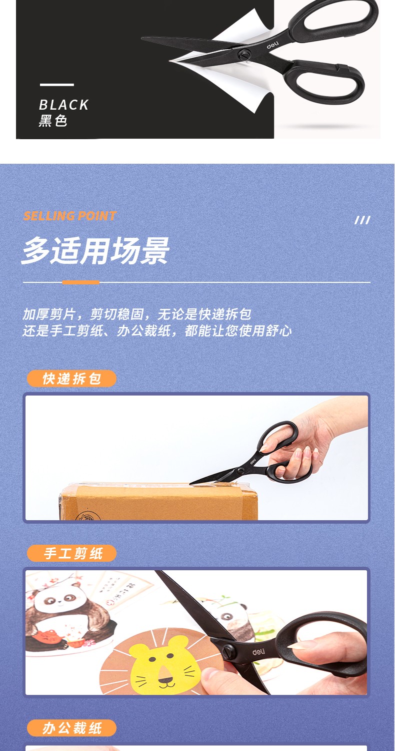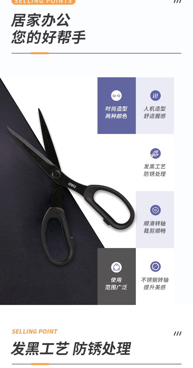 得力/deli 320023 剪刀 不銹鋼剪刀 家用辦公黑刃鋒利美工剪子裁縫剪