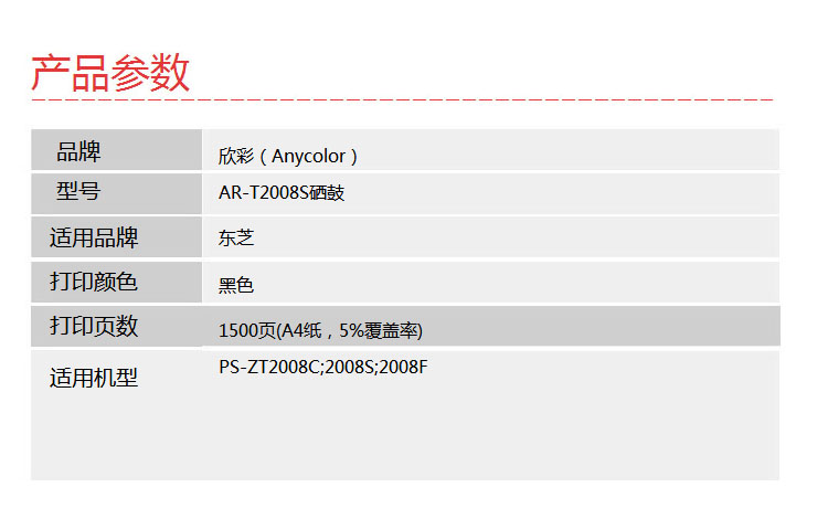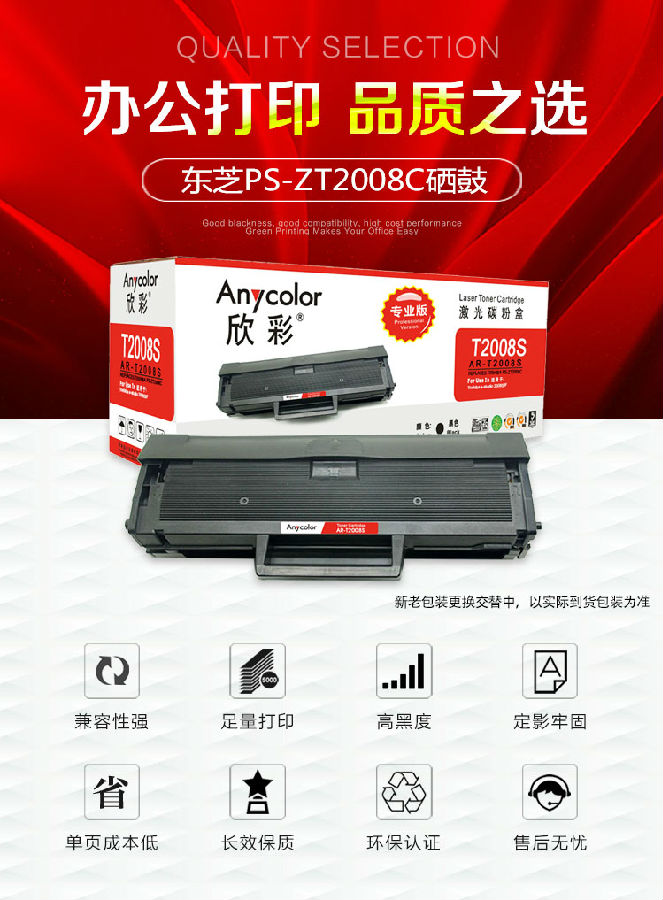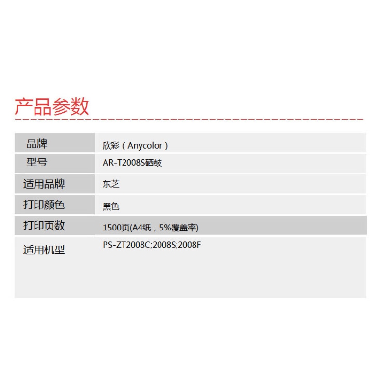 欣彩(Anycolor)PS-ZT2008C硒鼓(專業(yè)版)AR-T2008S黑色 適用東芝PS-ZT2008C 2008S 2008F粉盒