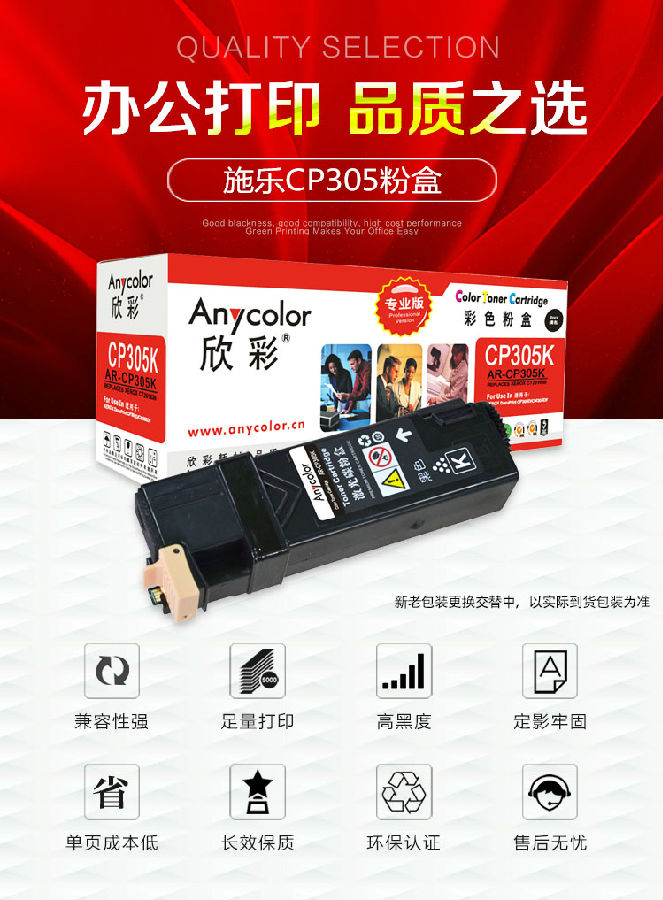 欣彩(Anycolor)CP305粉盒(專業(yè)版)AR-CP305K黑色 適用施樂 Xerox CT201636 CP305D 墨粉筒 耗材