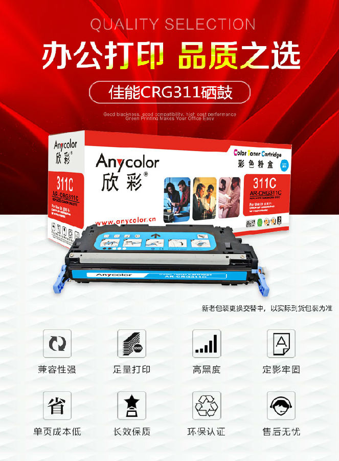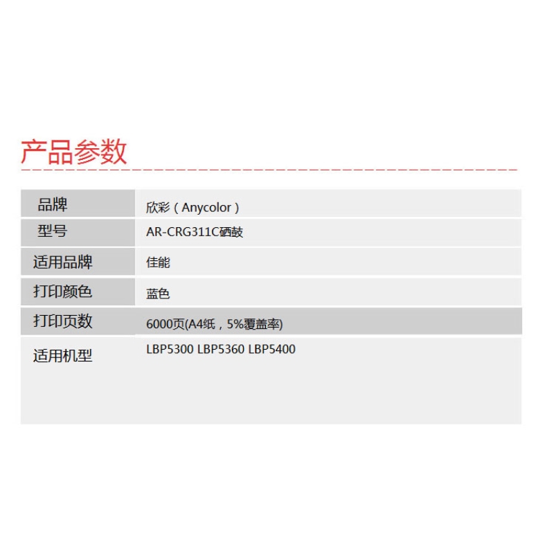 欣彩(Anycolor)CRG311硒鼓(專業(yè)版)AR-CRG311C藍(lán)色 適用佳能 CANON LBP5300 5360 5400